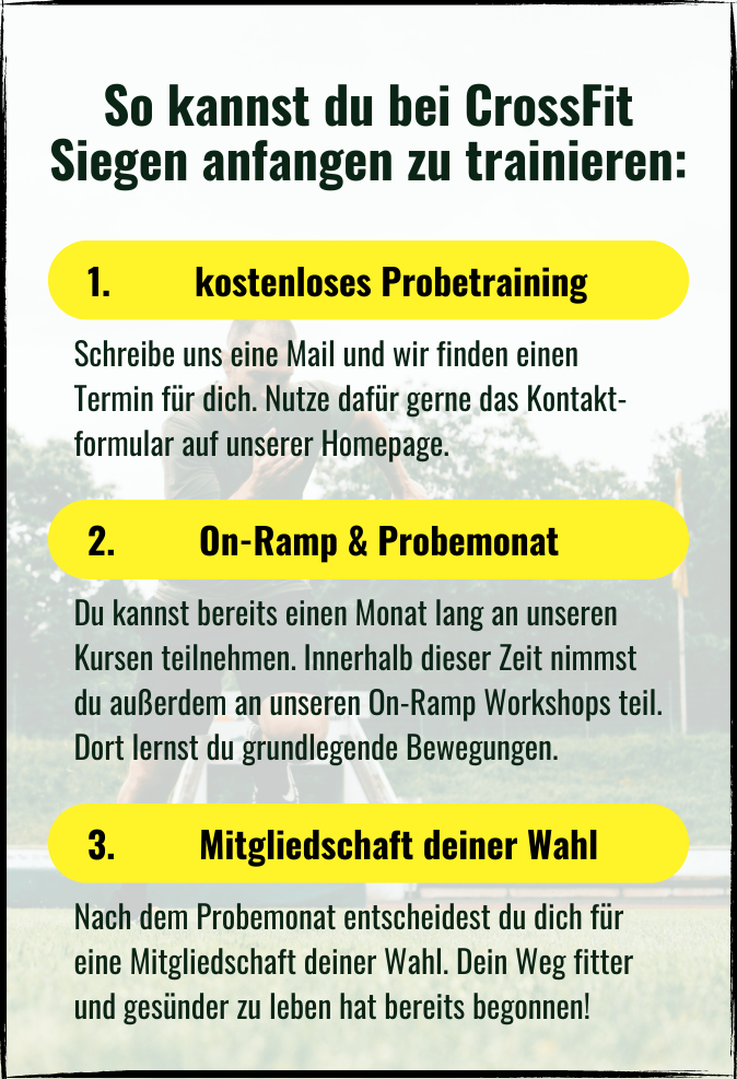 Darum ist es sehr wichtig, dass du von Beginn an ein technisches Bewegungsverständnis entwickelst. Unsere On-Ramp Workshops bereiten dich auf alle spezifischen Bewegungen vor. In vier Einheiten lernst du grundlegende Bewegungen im Umgang mit der Langhantel und der Kettlebell sowie Bewegungen mit deinem eigenen Körper.